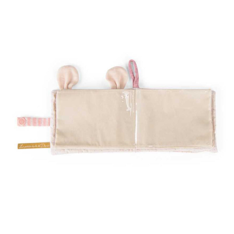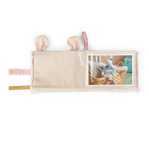 Découvrez cet album photo textile issu de la collection La petite école de danse de Moulin Roty, illustré par la souris danseuse emblématique.