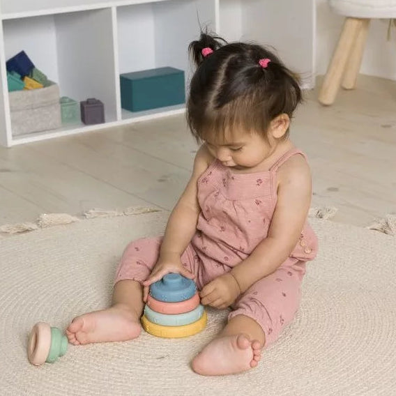 L'empilement progressif des anneaux aux teintes pastel encourage le développement de la motricité fine et renforce la coordination main-œil de bébé, tout en offrant des heures de jeu éducatif et amusant.