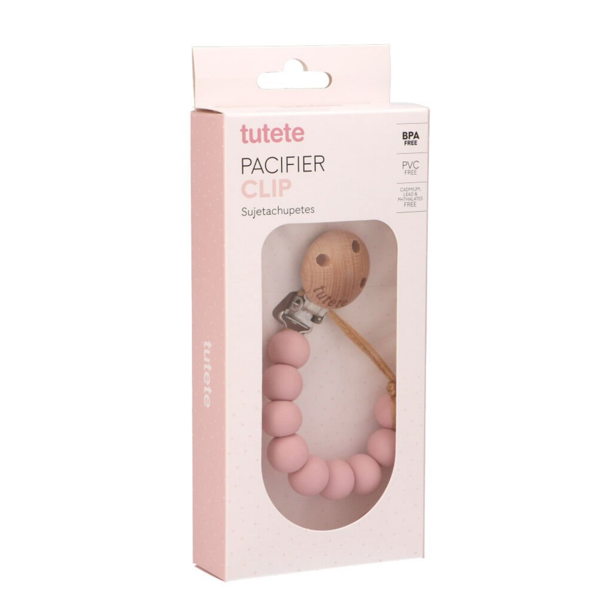 Attache-tétine en silicone rose pur