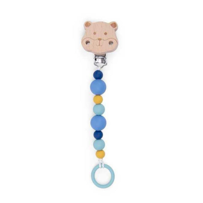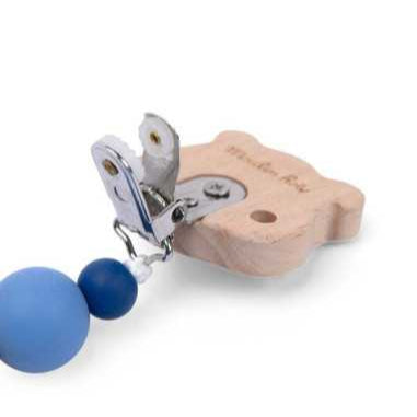 Composée de bois et de perles en silicone sécurisées, cette attache permet d’éviter la perte de la sucette tout en offrant un objet à mâchouiller pour bébé.