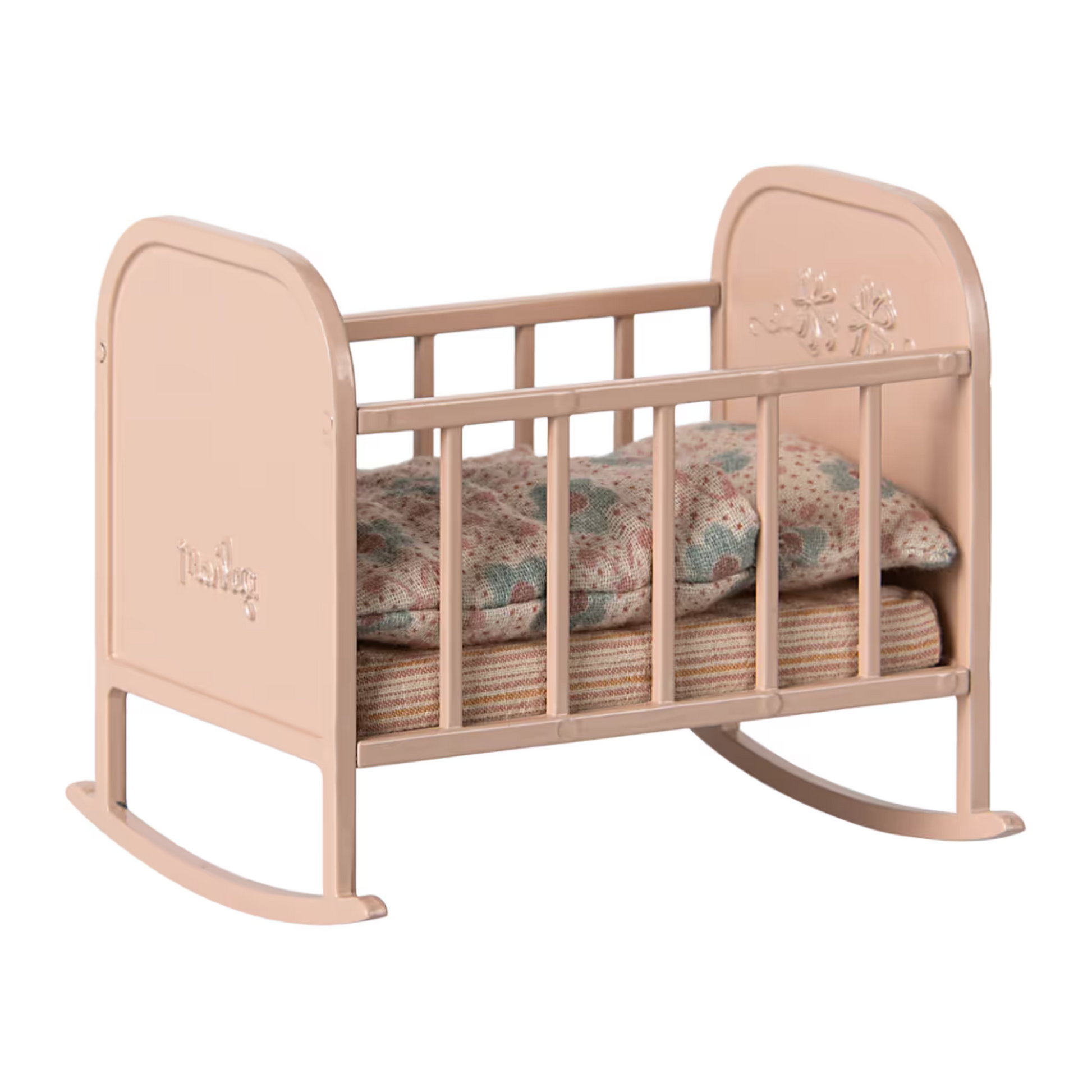 Le berceau de Maileg est un charmant petit berceau en métal pour les plus petits amis de l'univers des poupées. Les détails raffinés, tels que le délicat gaufrage floral de la tête de lit et les textiles doux, lui confèrent un aspect nostalgique, tandis que les pieds arrondis permettent de bercer facilement les poupées pour qu'elles s'endorment.