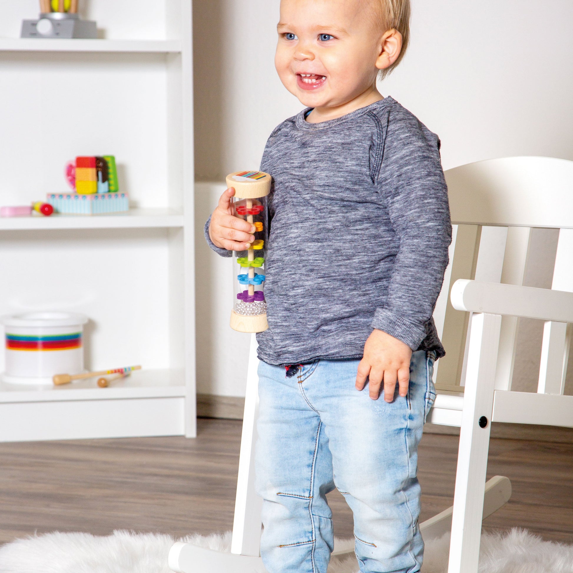 Parfait comme hochet, instrument de musique, jouet sensoriel ou accessoire de jeu, il accompagne l'enfant de la naissance jusqu'aux premières années, développant son écoute et son observation de manière ludique et naturelle.