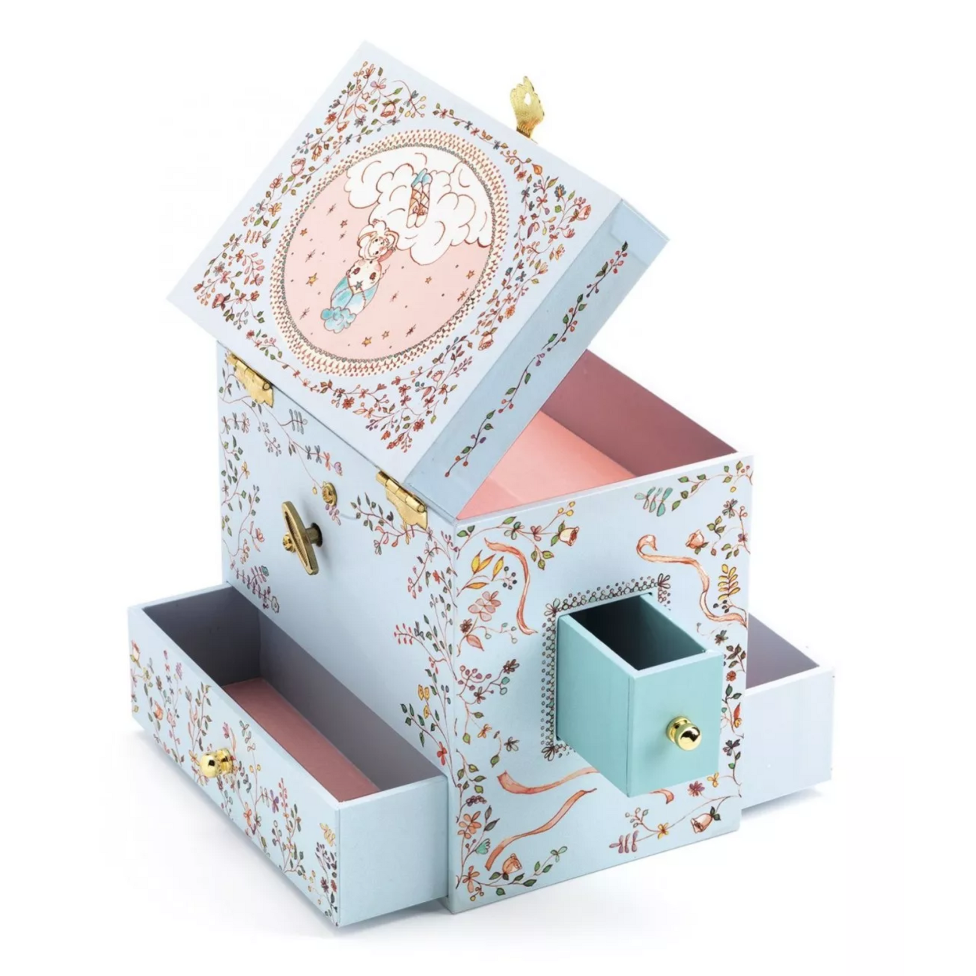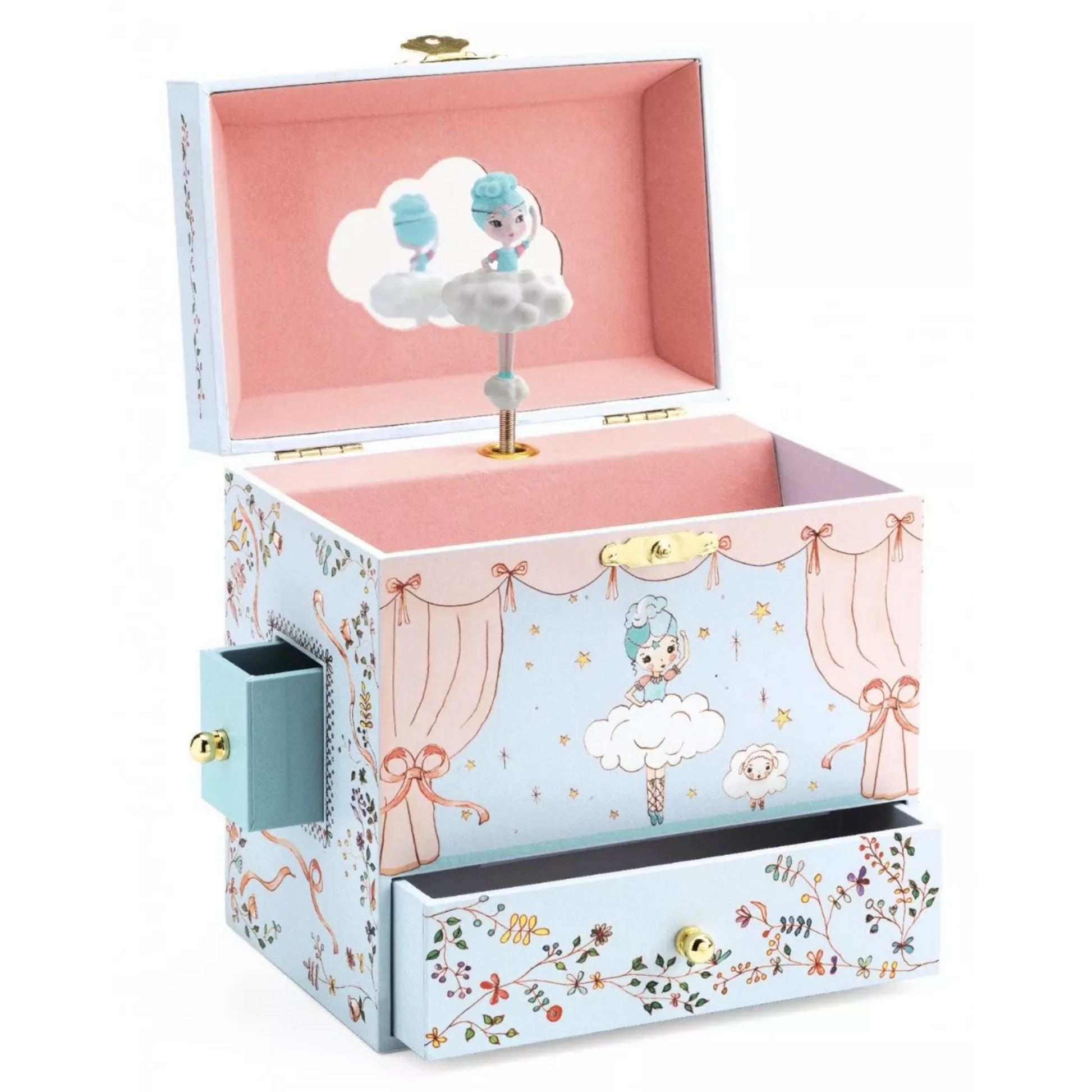 Découvrez la boîte à bijoux musicale "Ballerine en scène" de Djeco, un trésor enchanteur pour les petits avec ses compartiments secrets et sa mélodie douce "Romance de l'amour".
