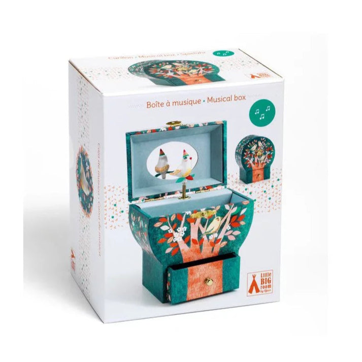 La boîte à musique arbre poétique de Djeco est un élégant coffret à bijoux musical, idéal pour les jeunes filles. Ce cadeau raffiné, parfait pour une naissance ou un anniversaire, diffuse la mélodie « Santa Lucia ».