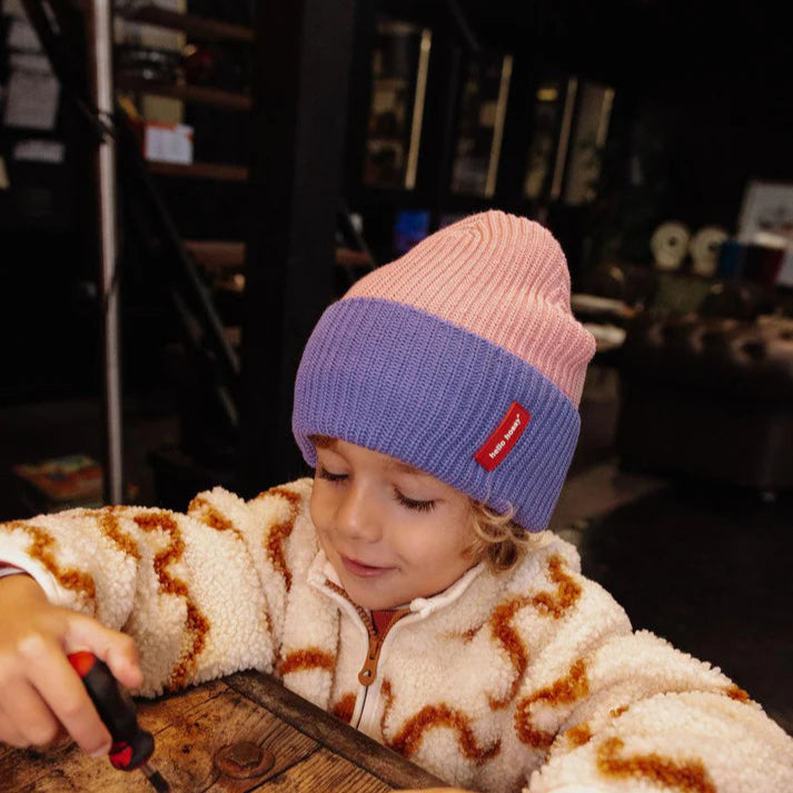 On adore le Bonnet pour enfants et bébés, Flow Maya. 100% coton bio, sans pompon, revers large. À porter en famille, parfait pour l’automne-hiver. Ne vous le faites pas chiper !