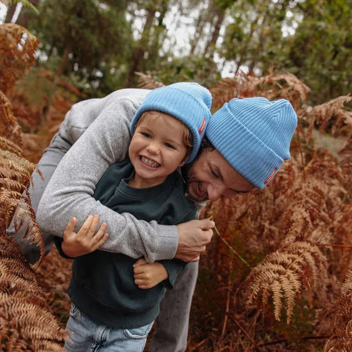 On adore le Bonnet pour enfants et bébés, Flow Océan. 100% coton bio, sans pompon, revers large. À porter en famille, parfait pour l’automne-hiver. Ne vous le faites pas chiper !