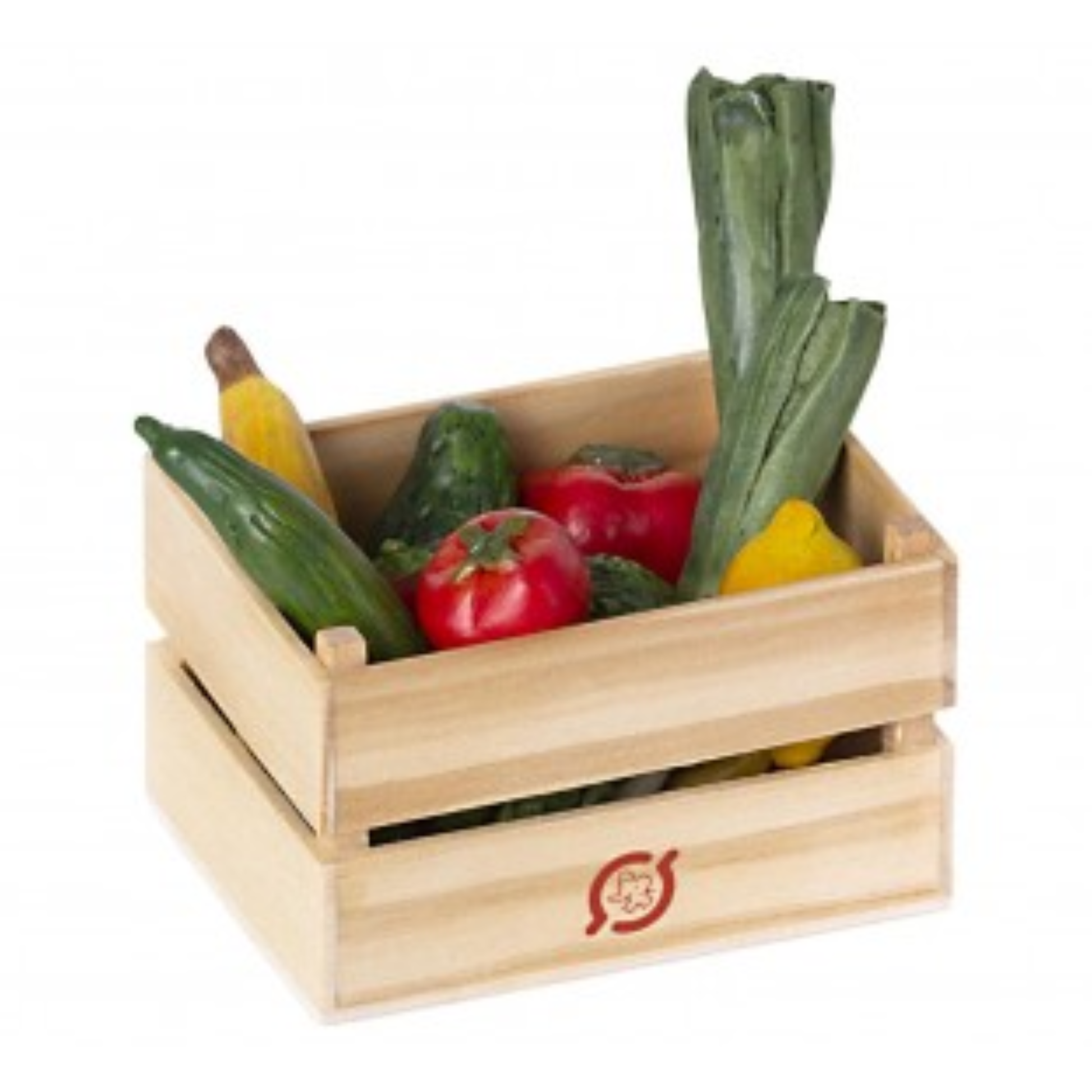 Cagette en bois avec fruits et légumes - Elément miniature Maileg