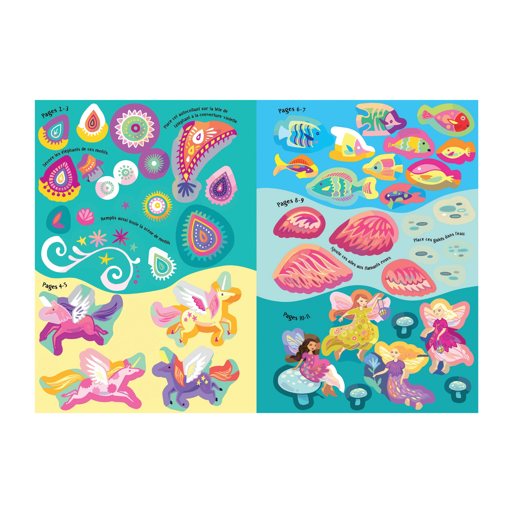 D'une forêt peuplée de fées à un scintillant défilé d'éléphants, anime chacune des scènes pleines de fantaisie de ce livre à l'aide des autocollants fournis.