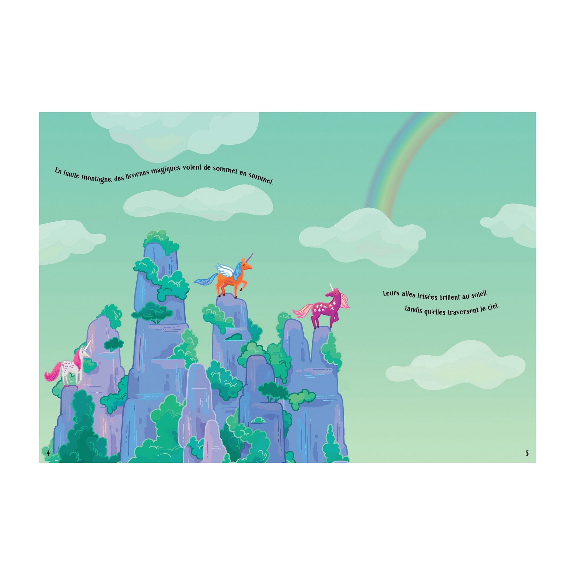 Plus de 200 autocollants de licornes, fées, sirènes et flamants roses à positionner dans des environnements variés. Une centaine d'autocollants sont scintillants et à effet holographique pour ajouter une touche de magie.