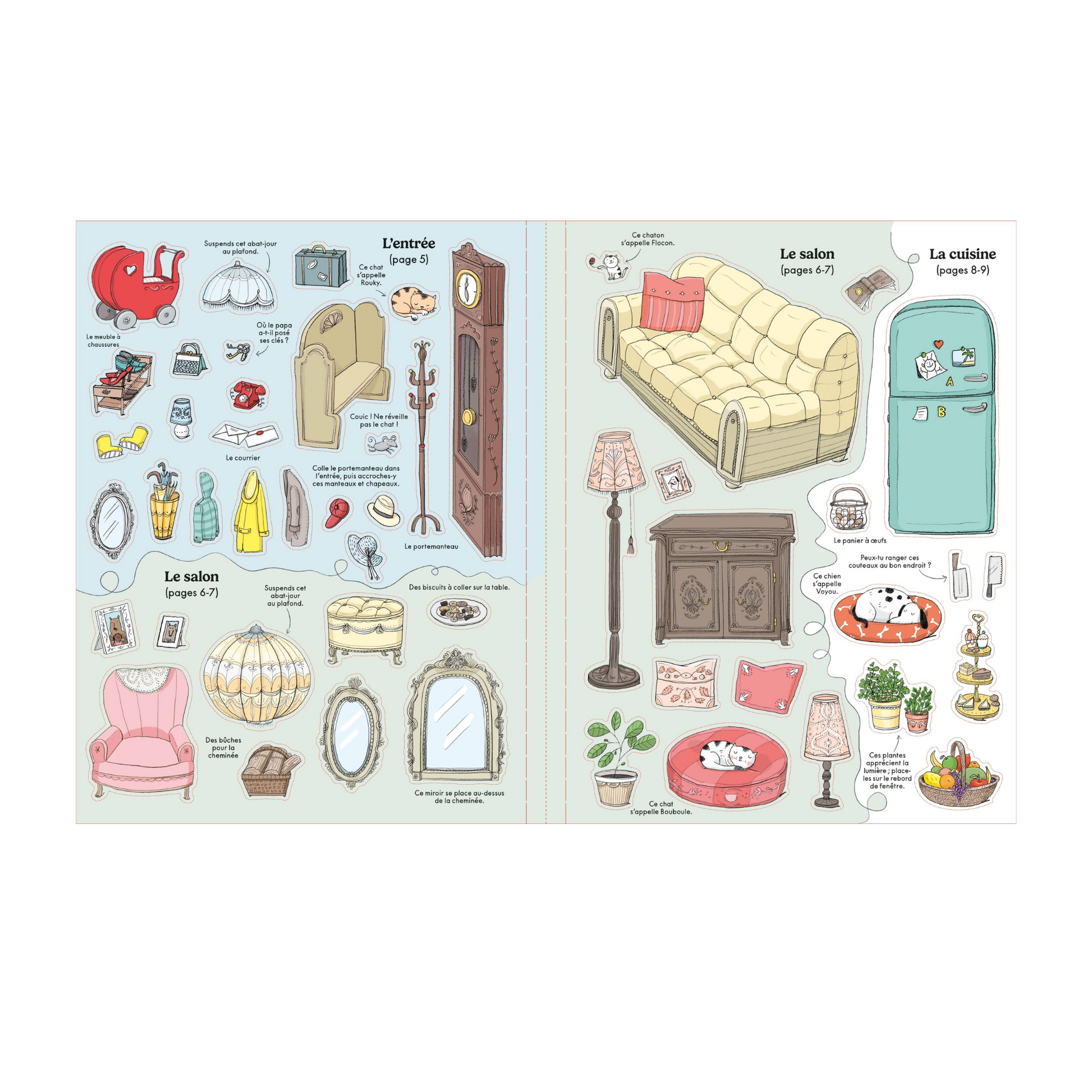 Un livre avec plus de 100 autocollants pour aménager et décorer une maison de poupée.Les pièces de cette maison de poupée n'attendent qu'à être remplies de meubles et d'accessoires...