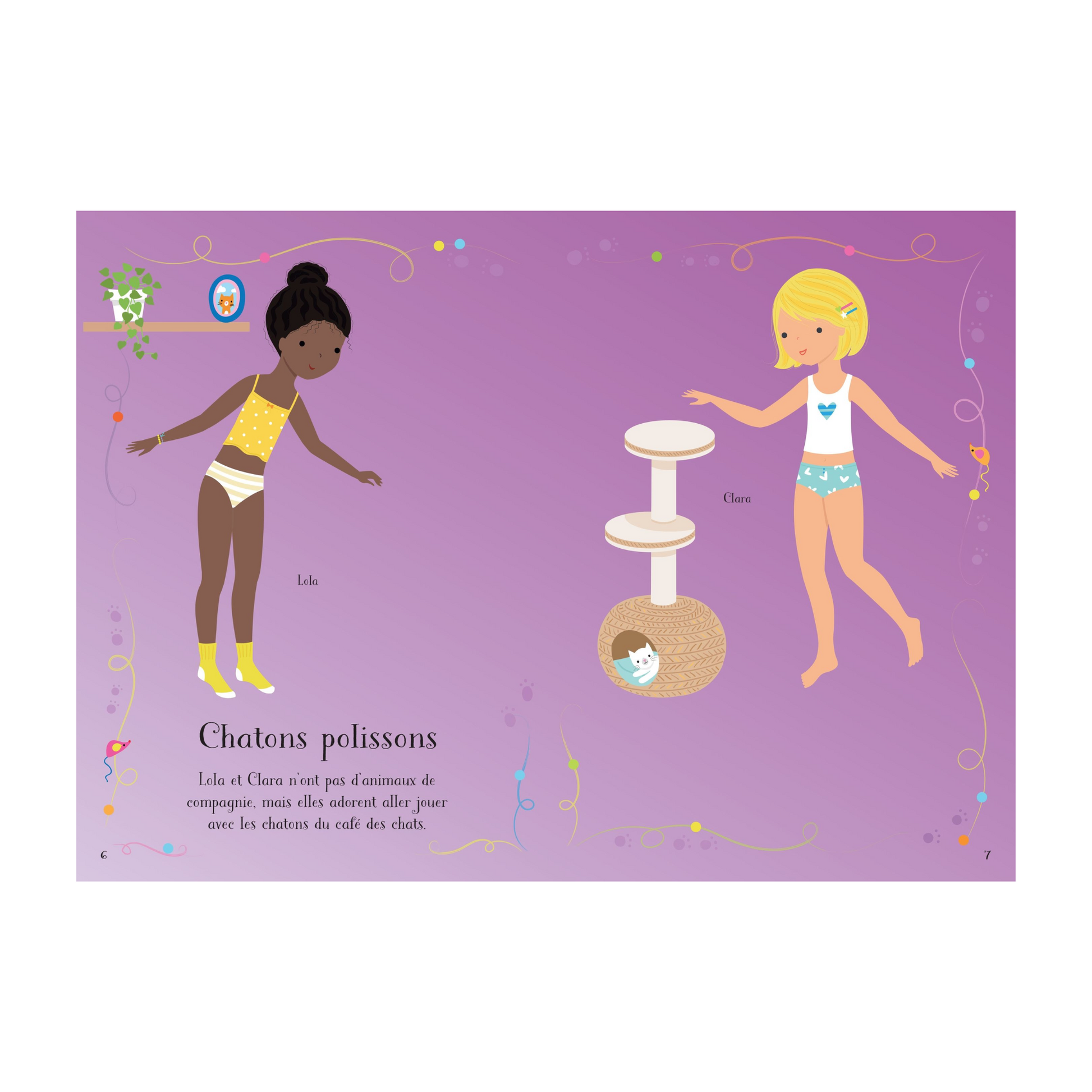 Sers-toi des jolis autocollants de ce livre pour habiller les amies et leur donner des animaux de compagnie dont elles pourront s'occuper.