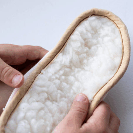 Une jolie paire de chaussons souples et sensation pieds nus, toute chaude et douce grâce à sa doublure intérieure imitation peau de mouton.