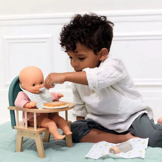 Le coffret « L'heure du repas » de Djeco, issu de la collection Pomea, permet aux enfants de nourrir leur poupée avec soin.