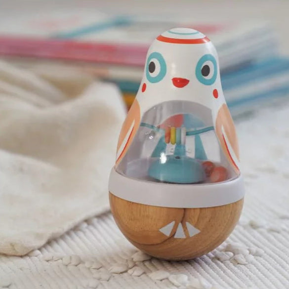 Le doux tintement des billes sur la cloche éveillera ses petites oreilles. Et grâce à sa base arrondie, le jouet se redresse toujours tout seul !