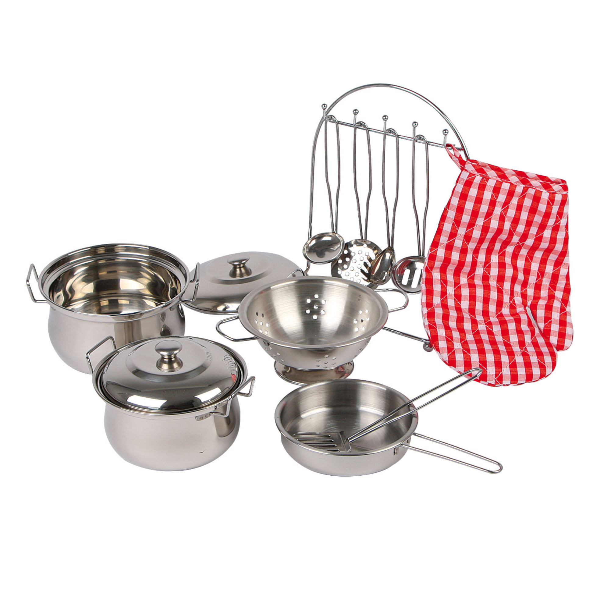 Cet ensemble comprend plusieurs casseroles, poêles et accessoires de cuisine pour des heures de jeu créatif. Équipé de gants de cuisine et d'un support pratique pour ranger les ustensiles, ce set offre tout ce qu'il faut pour imiter les grands.