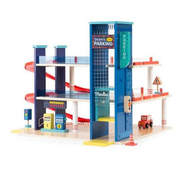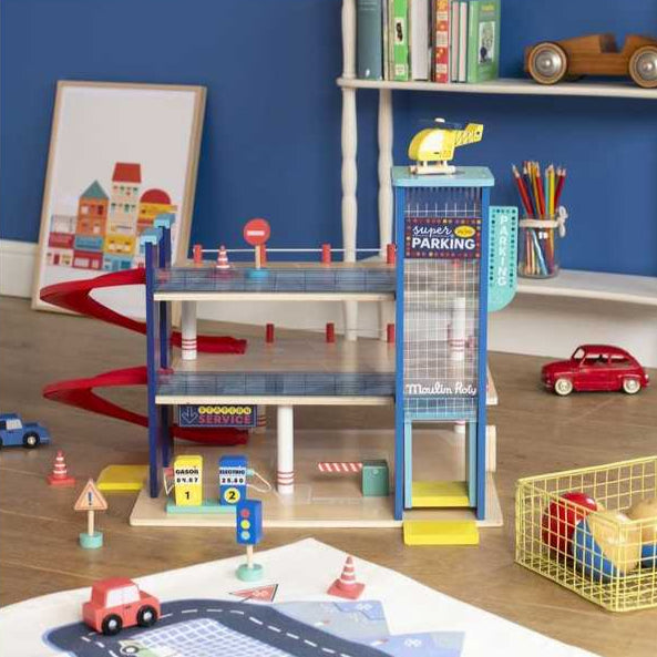 Explorez le garage de la collection Avenue du Moulin de Moulin Roty, un grand coffret de jeu conçu pour stimuler l’imagination des enfants dès 3 ans.