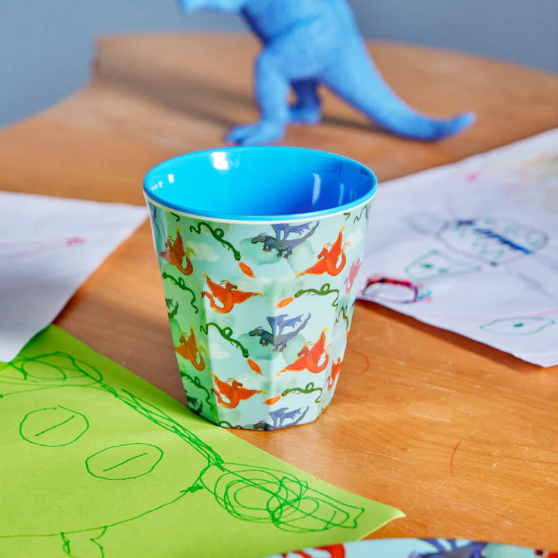 Notre fameux gobelet en mélamine, imprimé « Dragons ». Tellement pratique, tout le monde peut l’utiliser, et de tellement de manières différentes – pour les boissons, ranger les crayons, en pique-nique… Les seules limites sont celles de votre imagination.