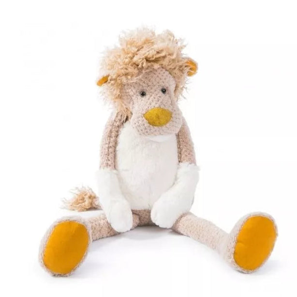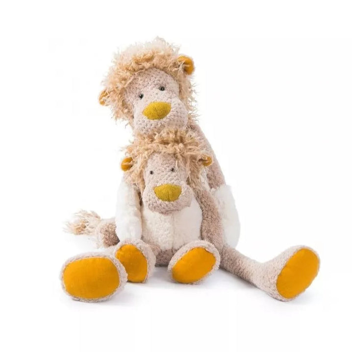 La peluche grand lion Baba Bou de Moulin Roty mesure 60 cm et se distingue par sa crinière ébouriffée ainsi que ses mains et ventre en tissu crème tout doux.