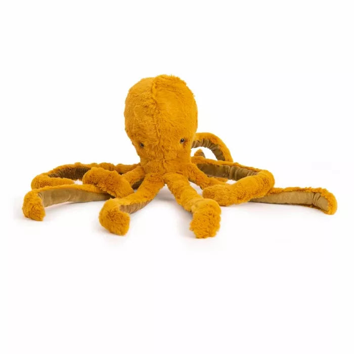 La couleur préférée de cet animal marin est le doré. Son corps tout en fourrure en est couvert, jusque sous ses tentacules pailletés en velours, qui rebondissent au rythme de ses mouvements. Un animal fascinant au regard attendrissant, qui deviendra le compagnon préféré de votre enfant.