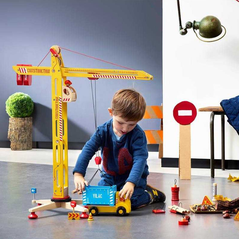 Explorez l'univers du chantier avec cette impressionnante grue en bois Vilac, conçue pour les enfants à partir de 3 ans.