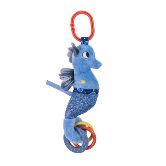 Découvrez l’hippocampe d’activités de la collection Les aventures de Paulie par Moulin Roty, un jouet d’éveil conçu pour stimuler bébé dès ses premiers mois.