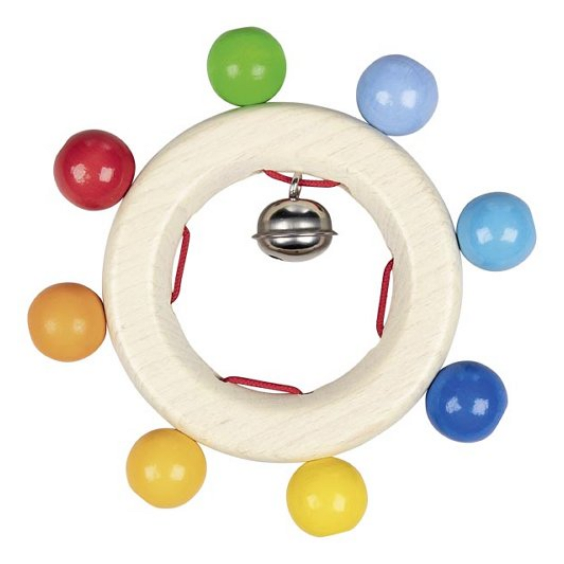 Hochet en bois - Anneaux arc-en-ciel avec grelot - Goki