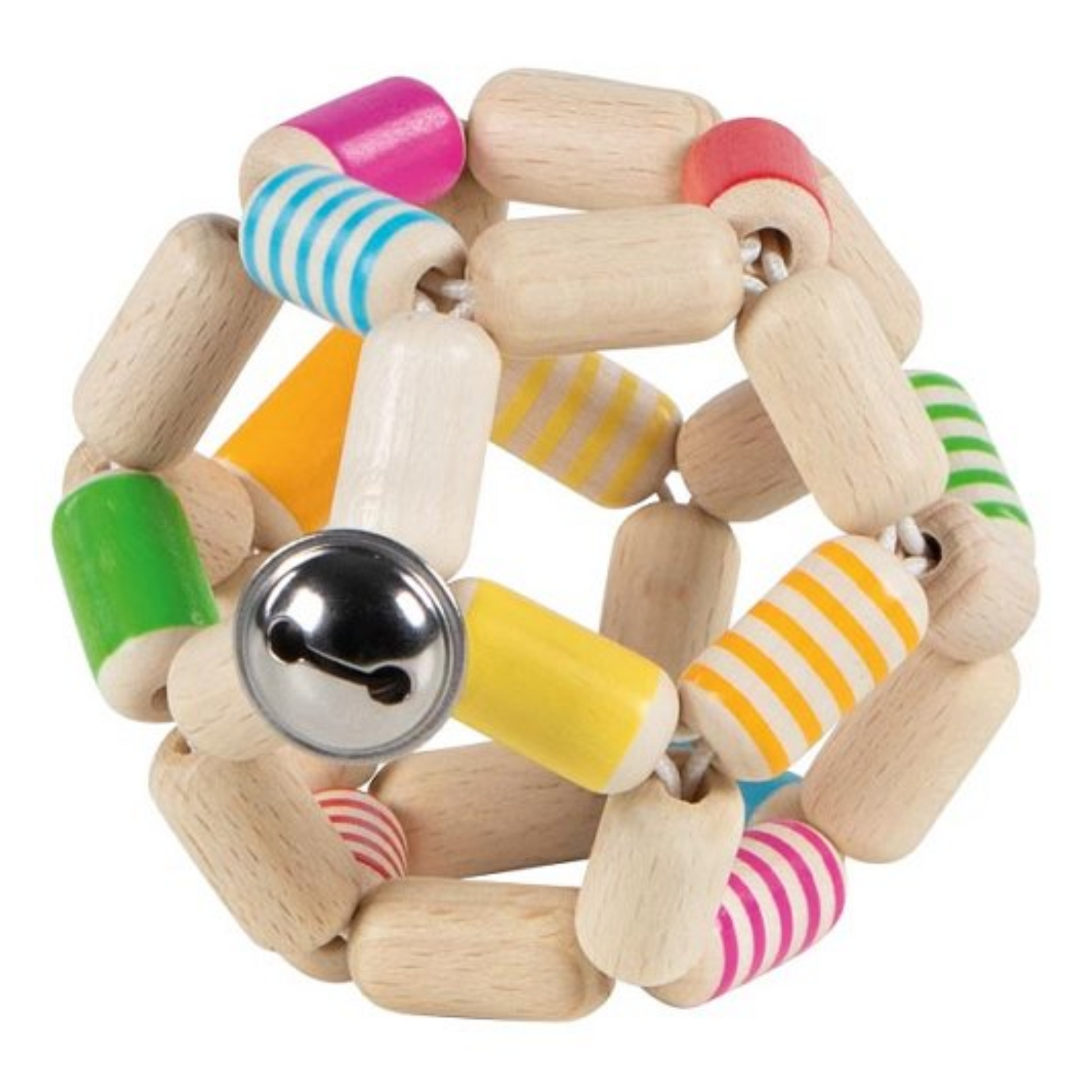 Hochet en bois - Petite balle flexible arc-en-ciel avec grelot - Goki