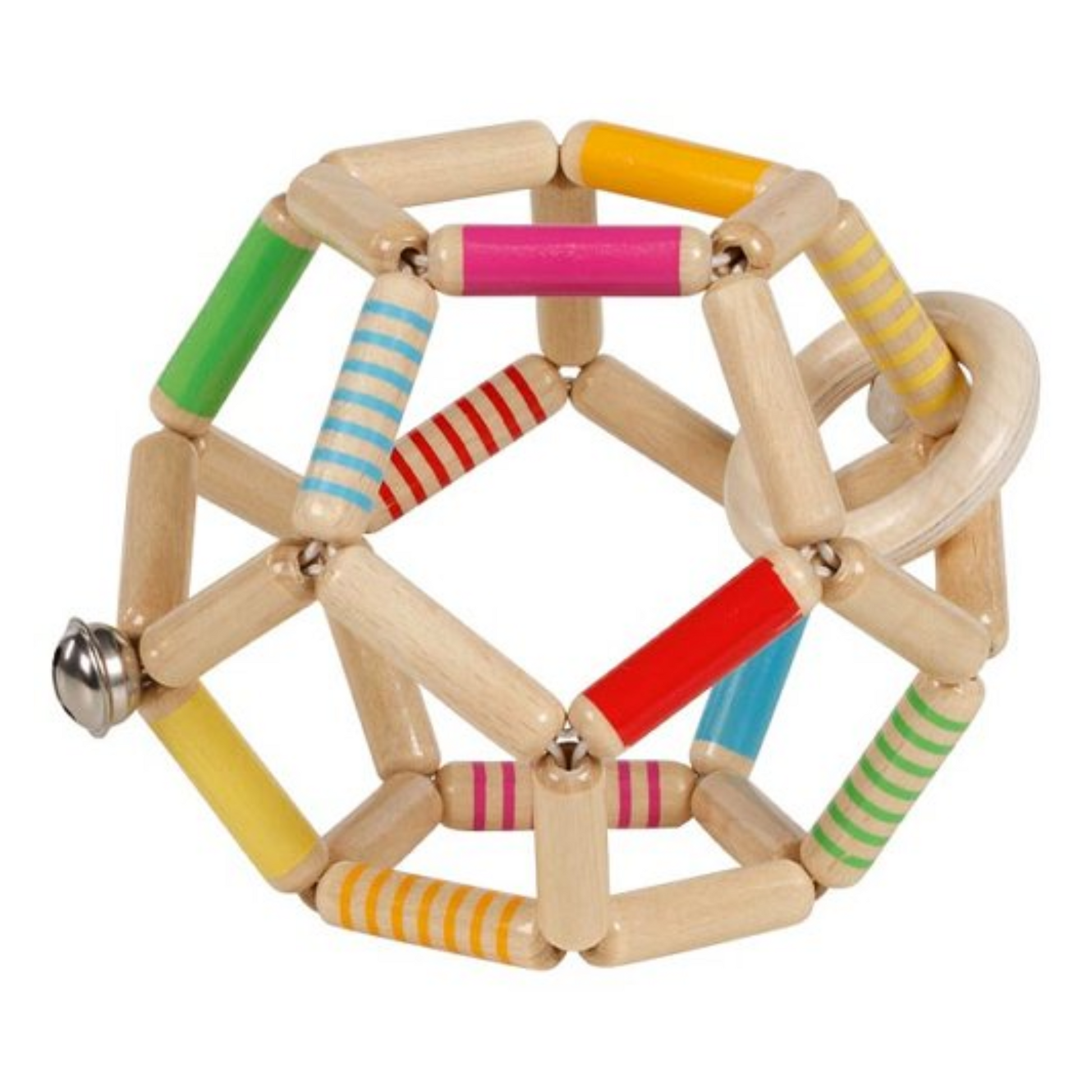 Hochet en bois - Balle flexible arc-en-ciel avec grelot - Goki