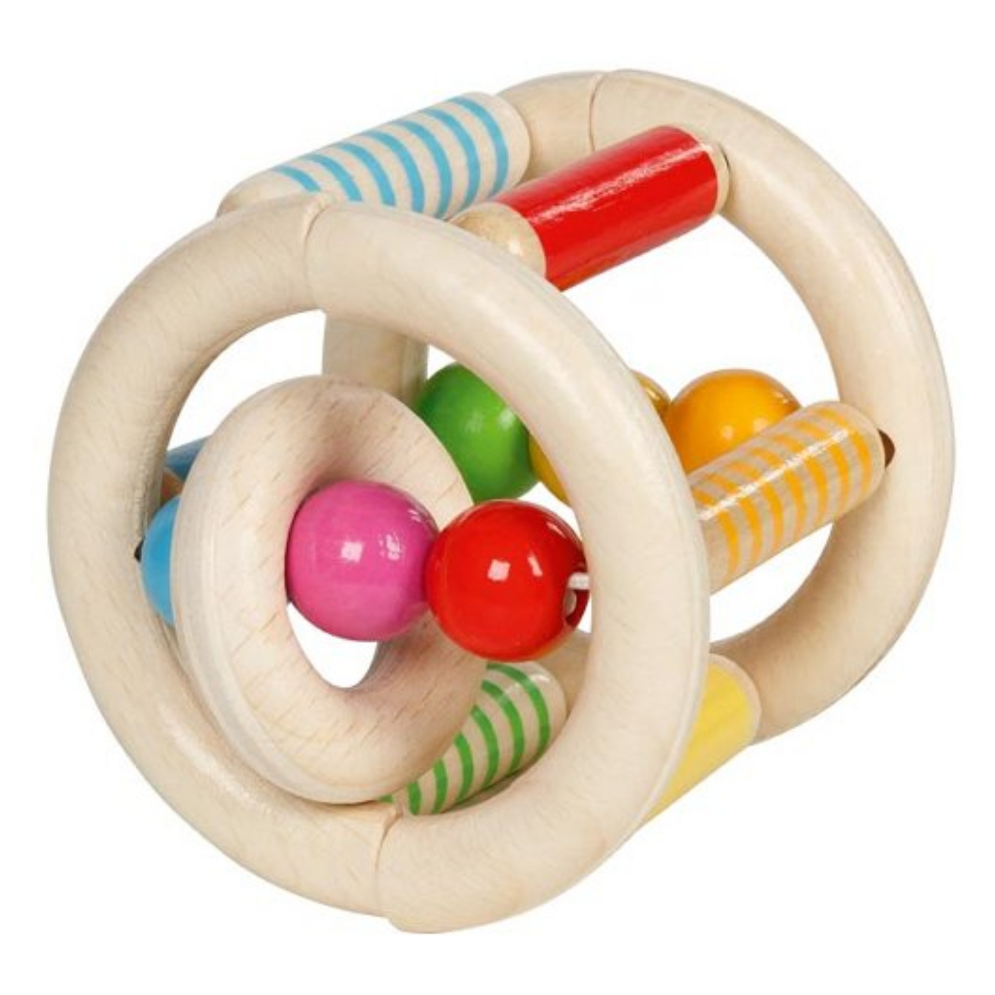 Hochet en bois - Cage flexible arc-en-ciel - Goki