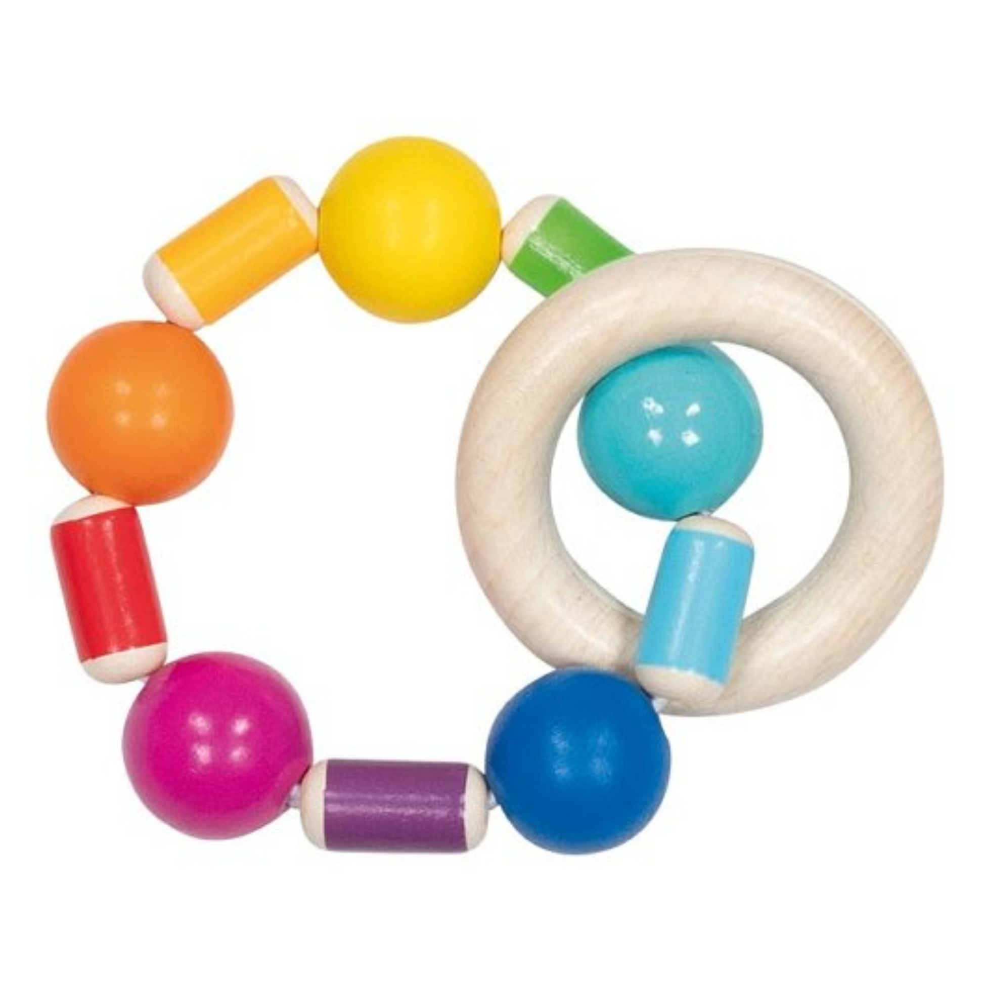 Hochet en bois - Anneaux flexibles arc-en-ciel - Goki