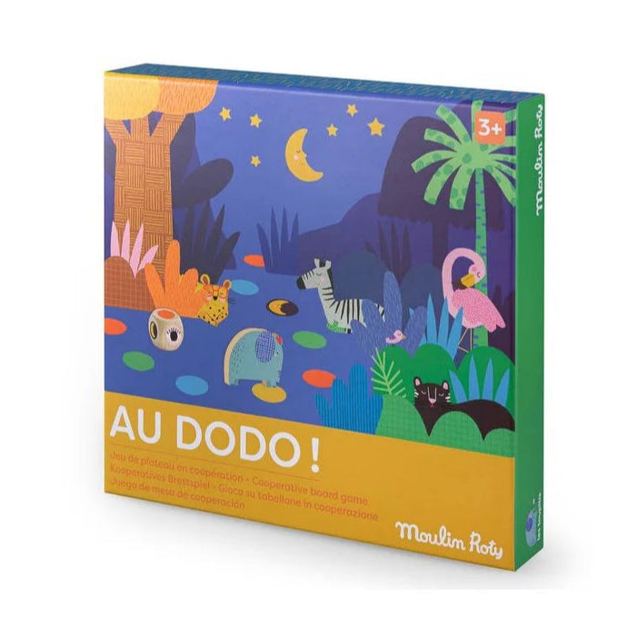 Découvrez « Au dodo ! », un jeu coopératif de la collection Les Toupitis par Moulin Roty, destiné aux enfants dès 3 ans. Les participants avancent ensemble sur un parcours coloré pour aider Léon l’éléphant à rejoindre l’arbre bleu, tout en évitant de réveiller les Toupitis.