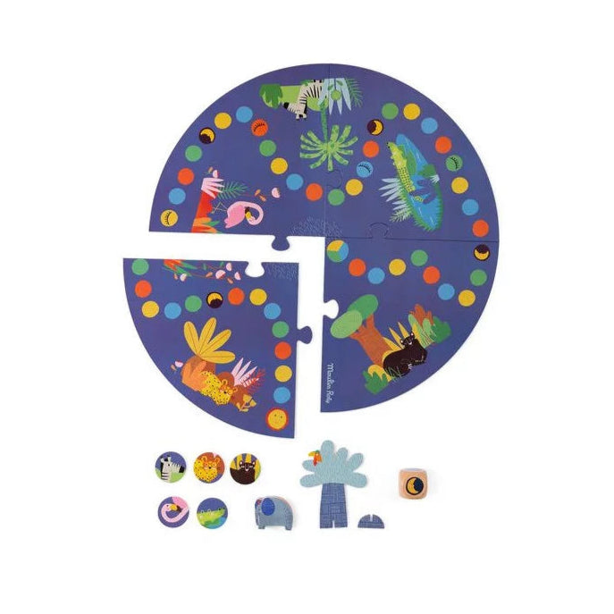 Ce jeu favorise la coopération et introduit en douceur les jeunes enfants au monde des jeux de société, tout en partageant une histoire ludique.