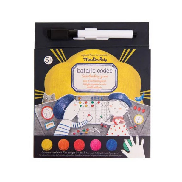 Découvrez le jeu Bataille codée magnétique de la collection Aujourd'hui c'est mercredi by Moulin Roty, un jeu de poche magnétique adapté aux enfants dès 5 ans. Ce jeu de réflexion et de logique invite les joueurs à déchiffrer rapidement la combinaison secrète de leur adversaire.