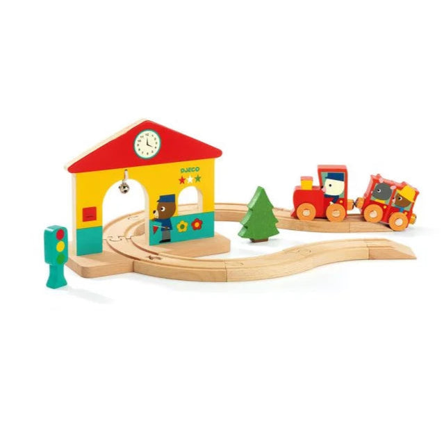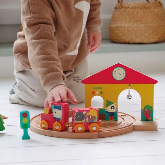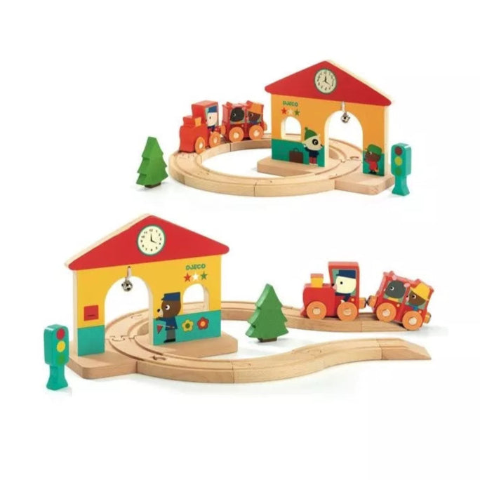 Grâce aux 10 rails, dont un équipé de la gare, votre enfant pourra créer un circuit ouvert ou fermé et développer son imagination en inventant des histoires.