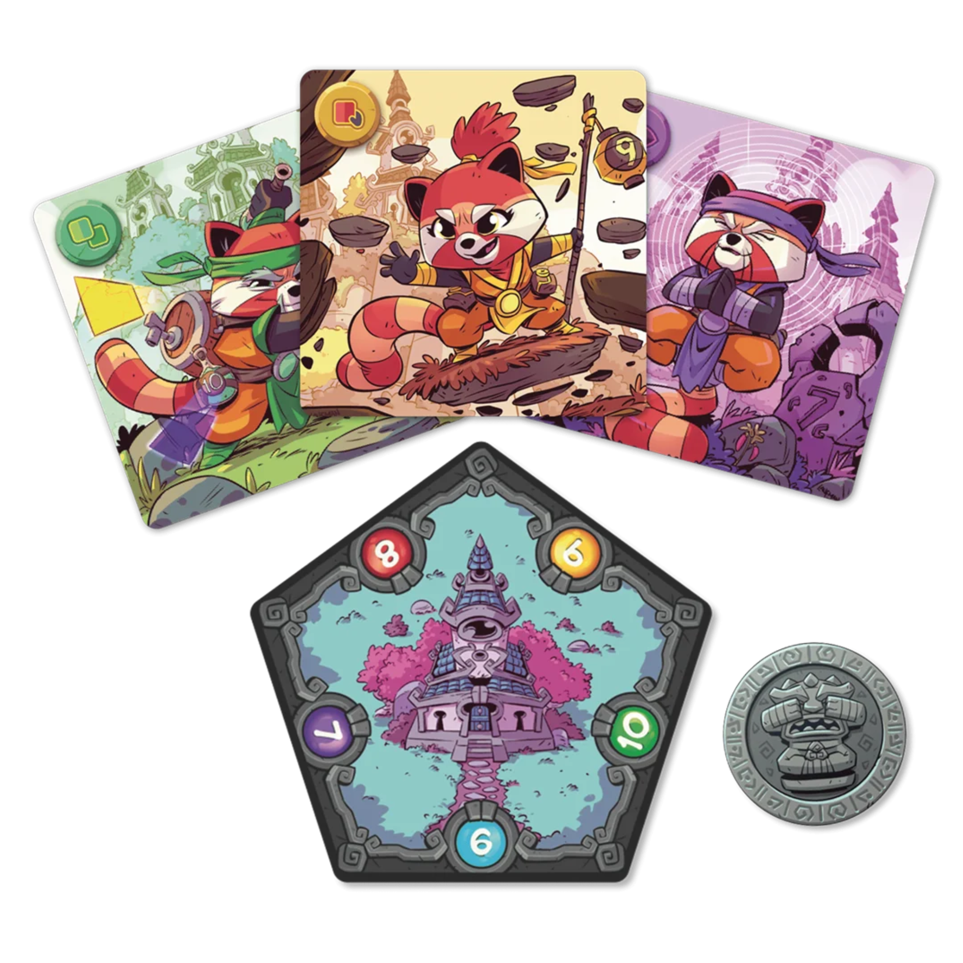 Les joueurs ont des Panda roux surentrainés en main. Mais attention, il ne peut y avoir trois Pandas identiques sur la table en même temps ! Le joueur qui posera un troisième panda identique recevra une pénalité. N’en accumulez pas trop ou vous serez exclu du tournoi ! Heureusement, en réunissant les 5 Pandas différents, vous pourrez vous débarrasser de toutes vos pénalités.