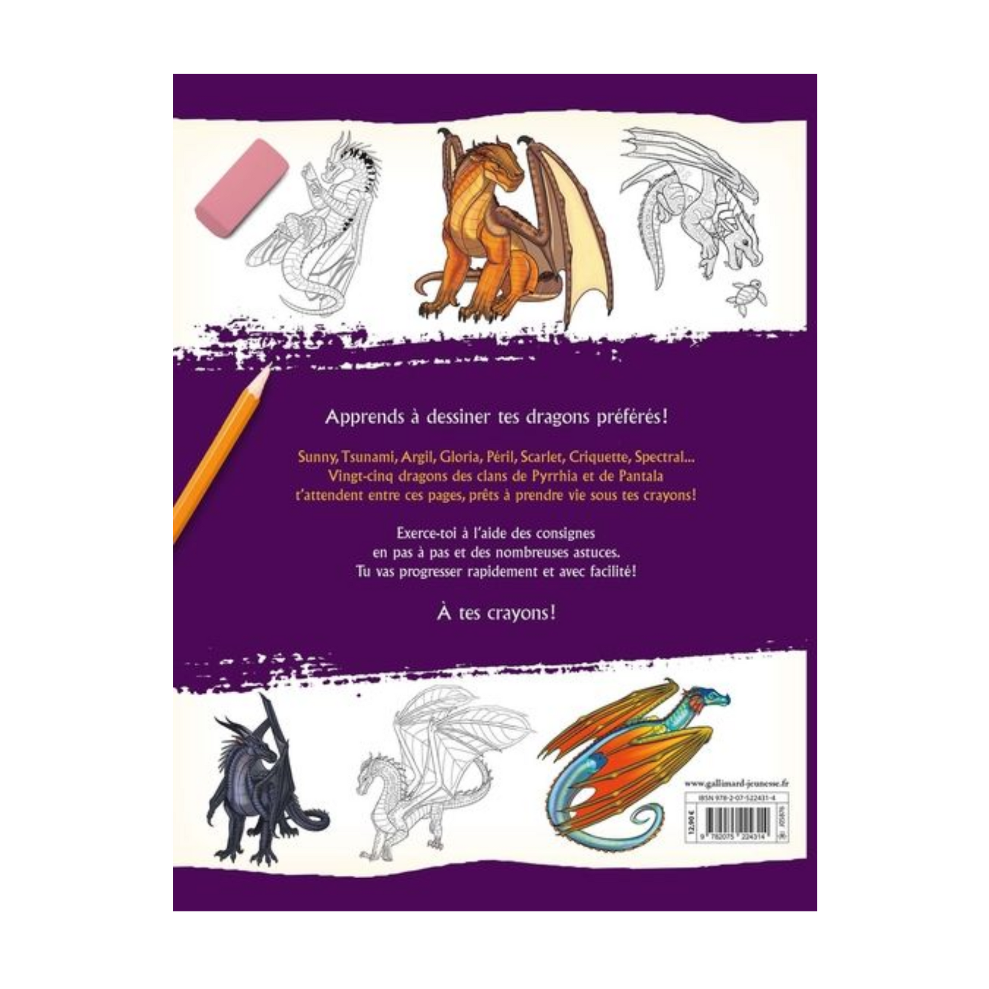 Sunny, Tsunami, Argil, Gloria, Péril, Scarlet, Criquette, Spectral... Vingt-cinq dragons des clans de Pyrrhia et de Pantala t'attendent entre ces pages, prêts à prendre vie sous tes crayons !