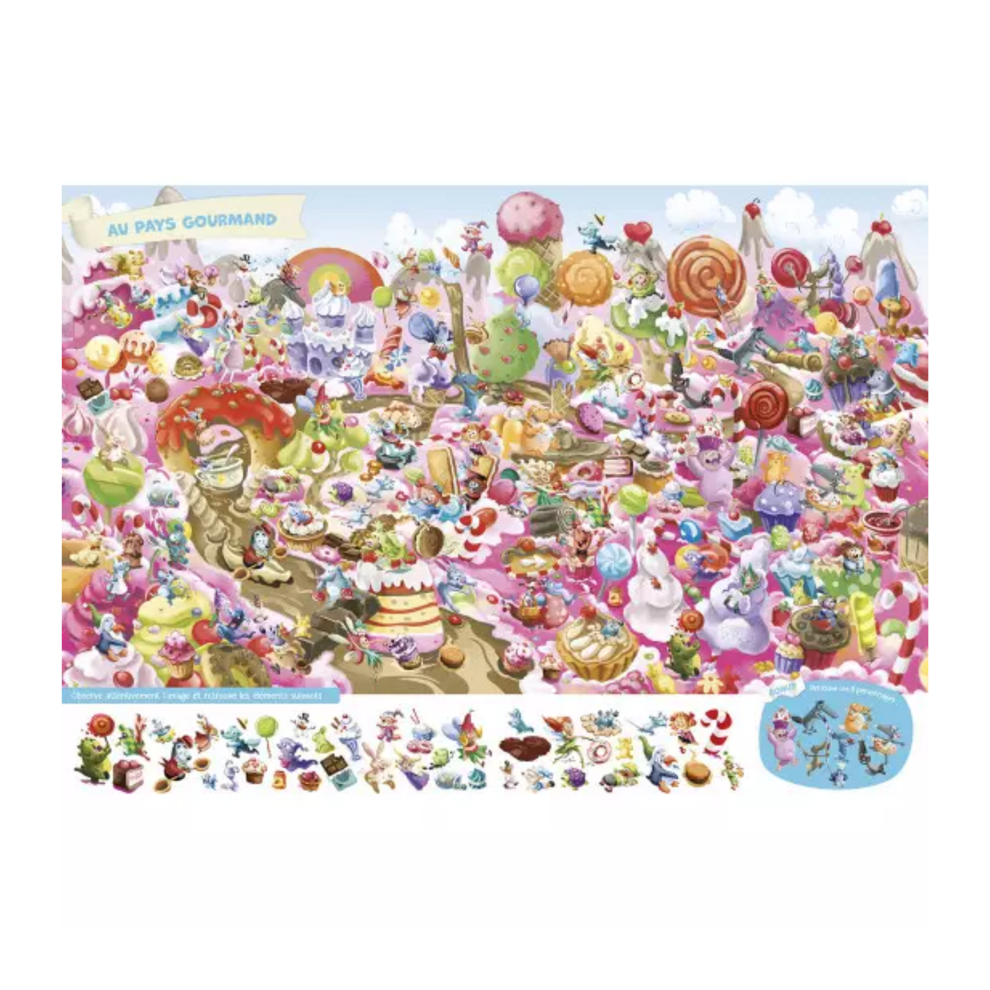 Sur chacune des seize planches, l'enfant doit retrouver près de quarante éléments dans des décors inspirés de l'univers de Loup et de ses amis.