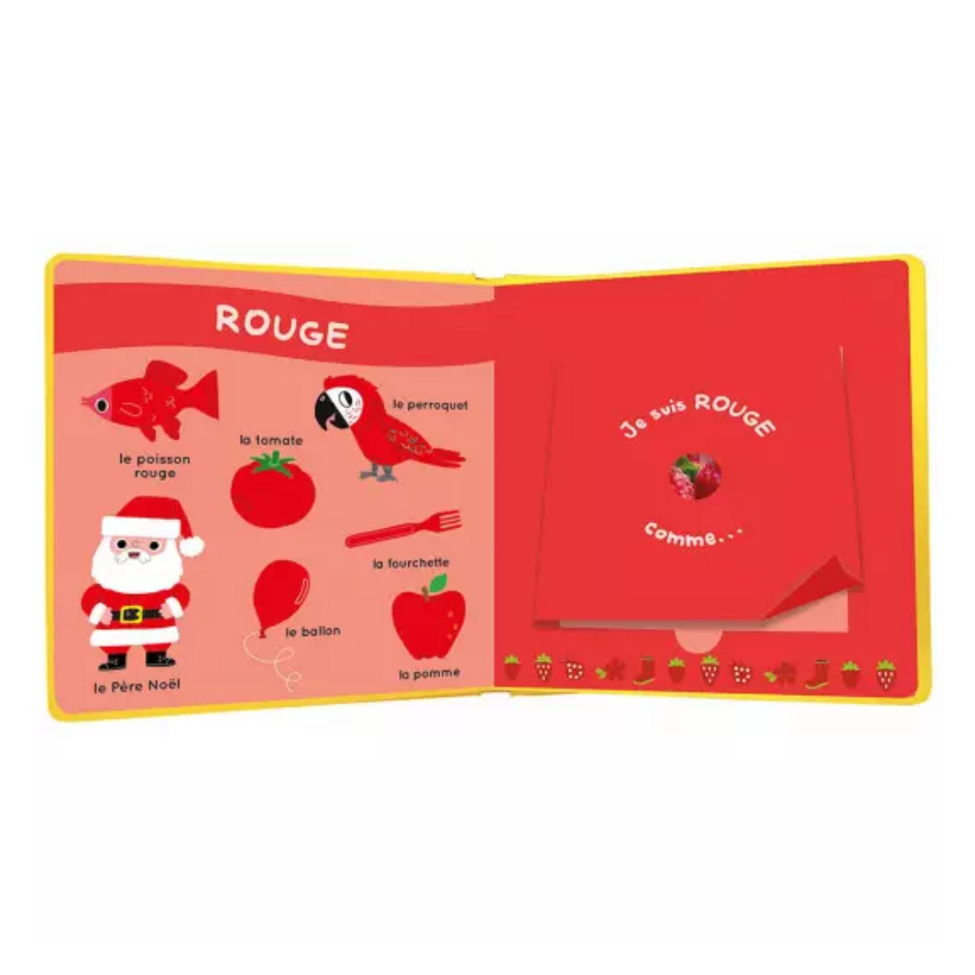 Un imagier animé avec des volets à soulever et des images à frotter pour découvrir les couleurs et les odeurs du kiwi, de la framboise, de la vanille, du raisin, de la rose, du chocolat et de la mer.