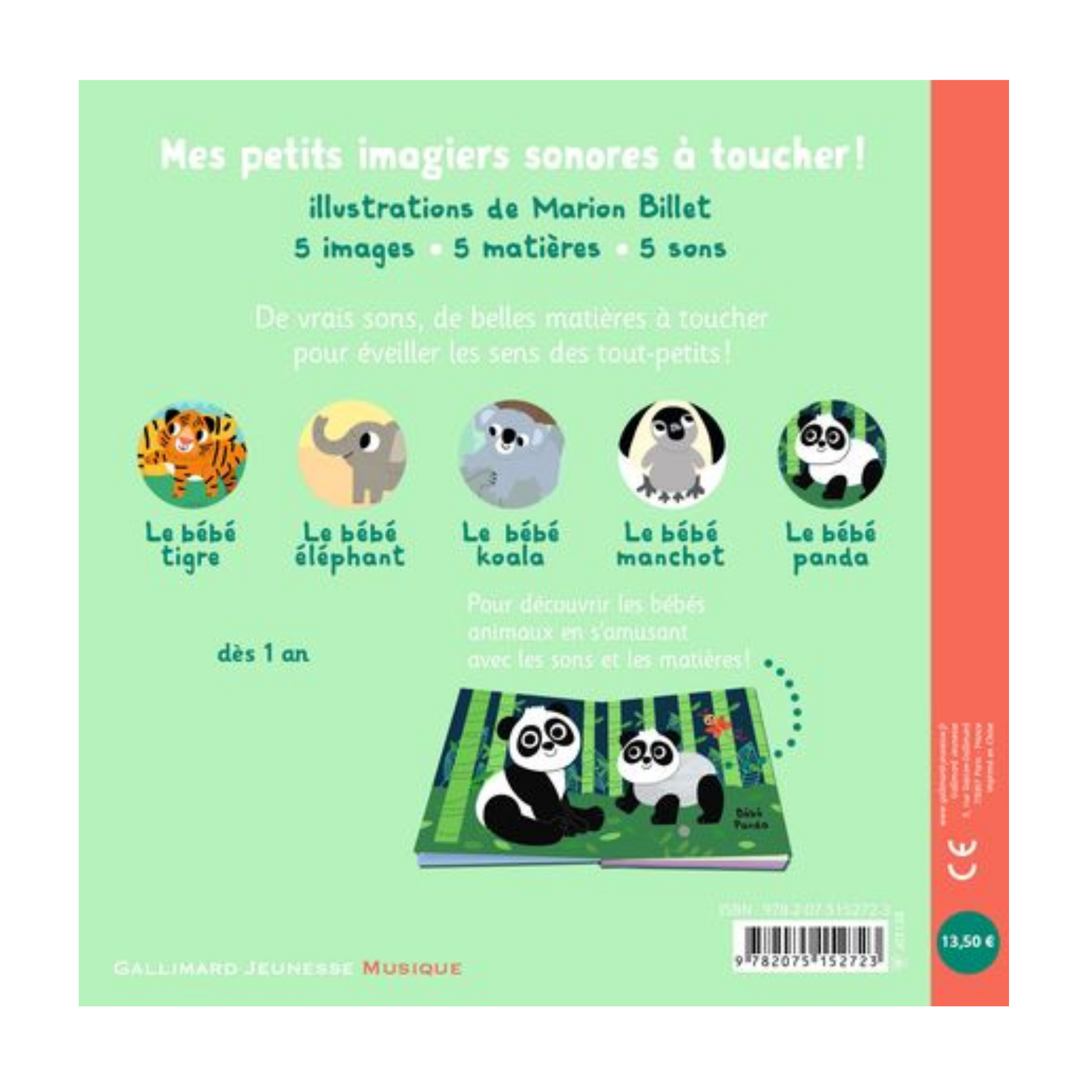 Un album avec des puces sonores et des matières à toucher pour une découverte des bébés animaux, parmi lesquels le tigre, l'éléphant, le panda ou encore le manchot.