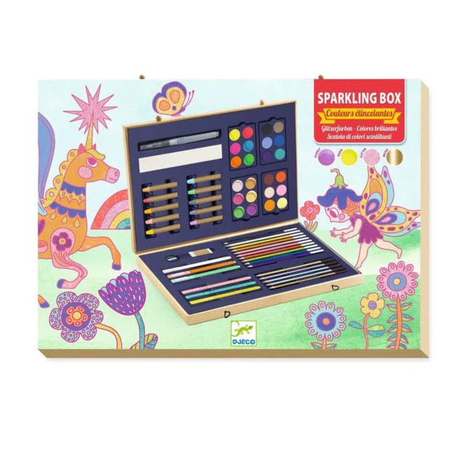 Plongez dans l’univers créatif avec la mallette Sparkling color box de Djeco ! Cette valise contient 60 pièces de super matériel pour les artistes dès 6 ans.