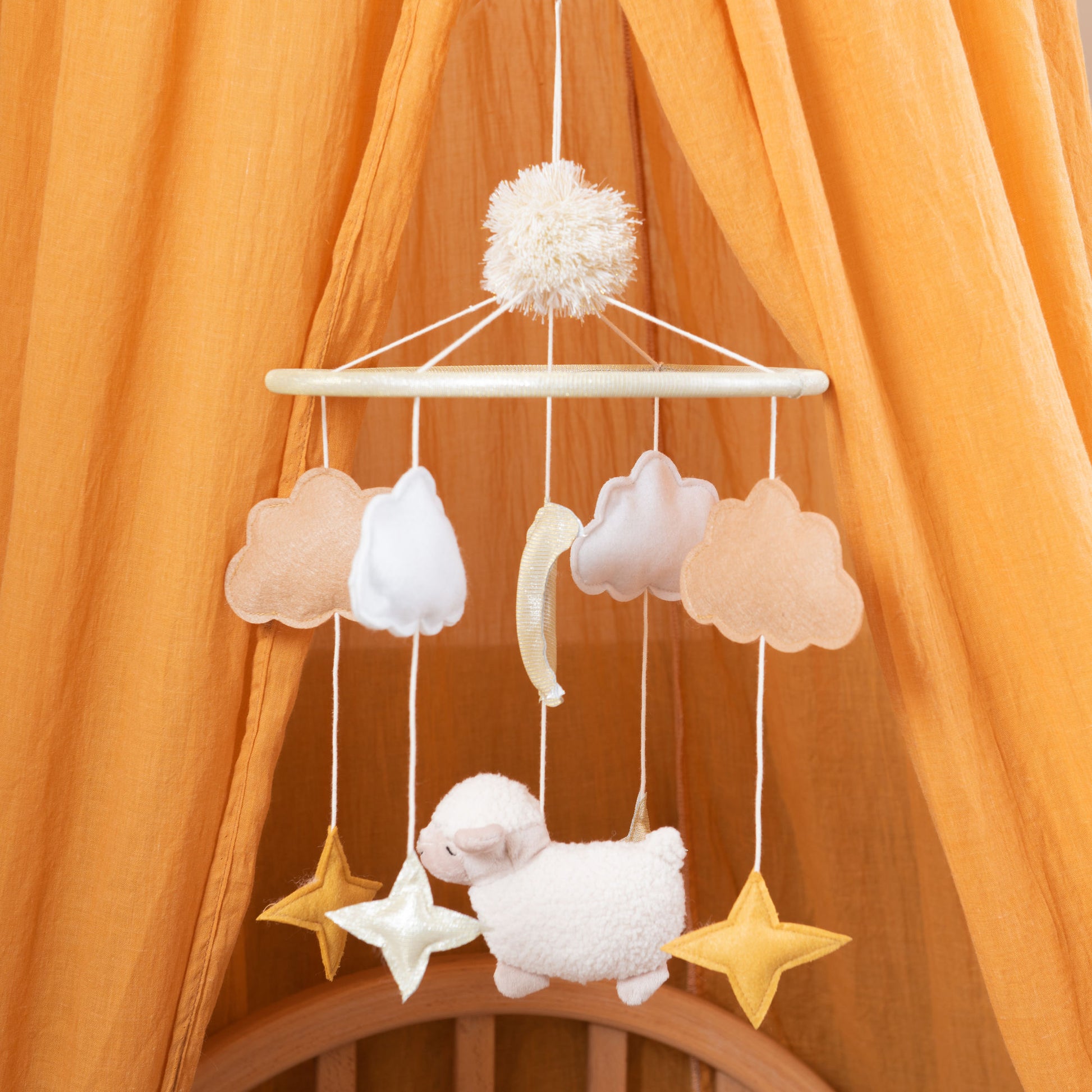 Léger et suspendu, ce mobile stimule la curiosité visuelle des tout-petits tout en s’intégrant harmonieusement à différents styles de décoration.
