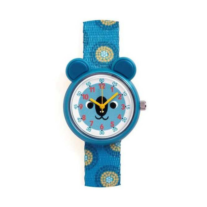 Son bracelet bleu et jaune met en valeur un cadran adorable avec une tête de koala aux oreilles en relief. Elle propose un affichage pédagogique avec les chiffres des heures et des minutes, et son mouvement japonais Miyota 2035 fonctionne en silence.