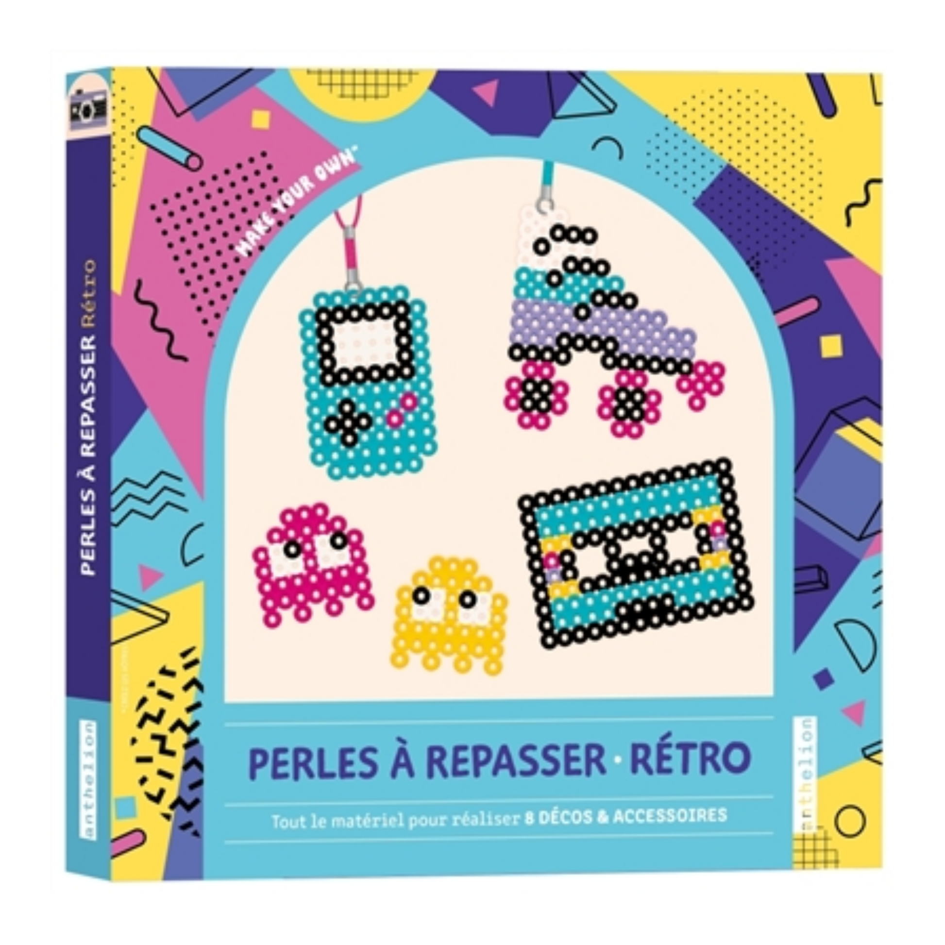 Perles à repasser : rétro : tout le matériel pour réaliser 8 décos & accessoires - Coffret DIY