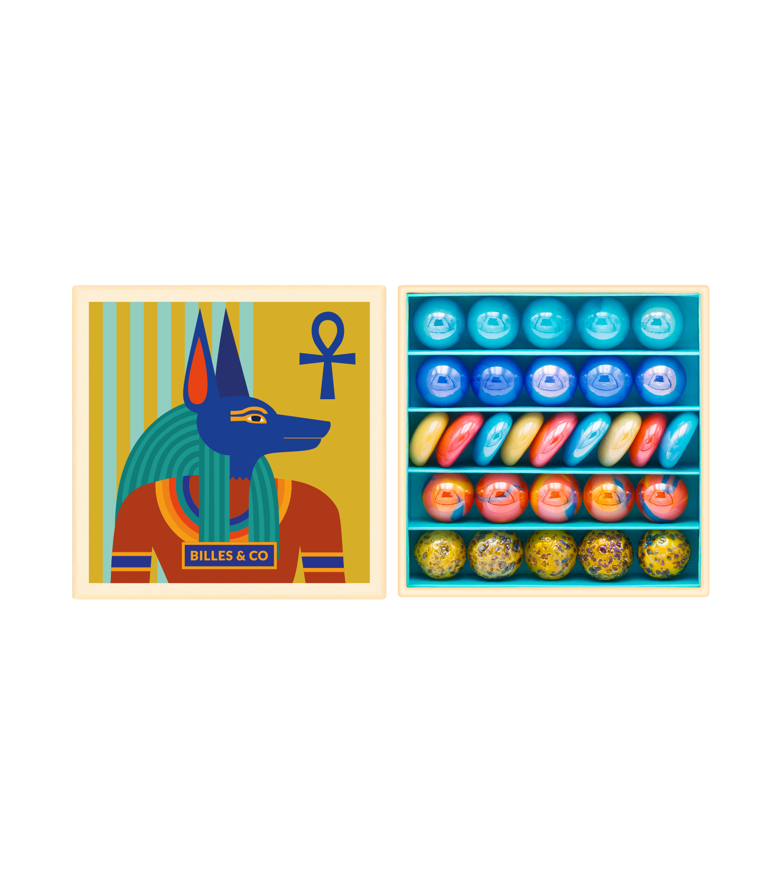 Le petit coffret Anubis renferme un trésor de 29 billes et galets, soigneusement sélectionnés et rangés à la main dans le coffret. Un assortiment unique aux couleurs du dieu de la nécropole. Un petit trésor d’Egypte à jouer et à collectionner.