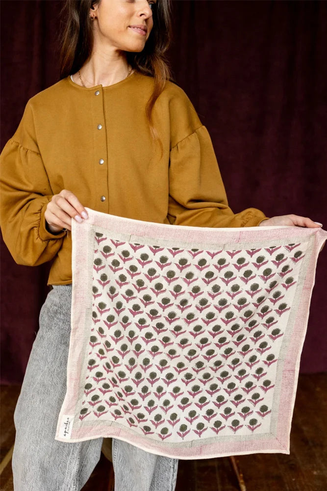 - Le block-print indien consiste à imprimer à la main, grâce à des tampons taillés dans le bois, des motifs aux couleurs réalisées à partir d'un mélange de pigments naturels. Respectueux de l'environnement, ce tissu ne contient aucun produit chimique car les couleurs sont fixées grâce à un mélange d'eau et de vinaigre blanc.