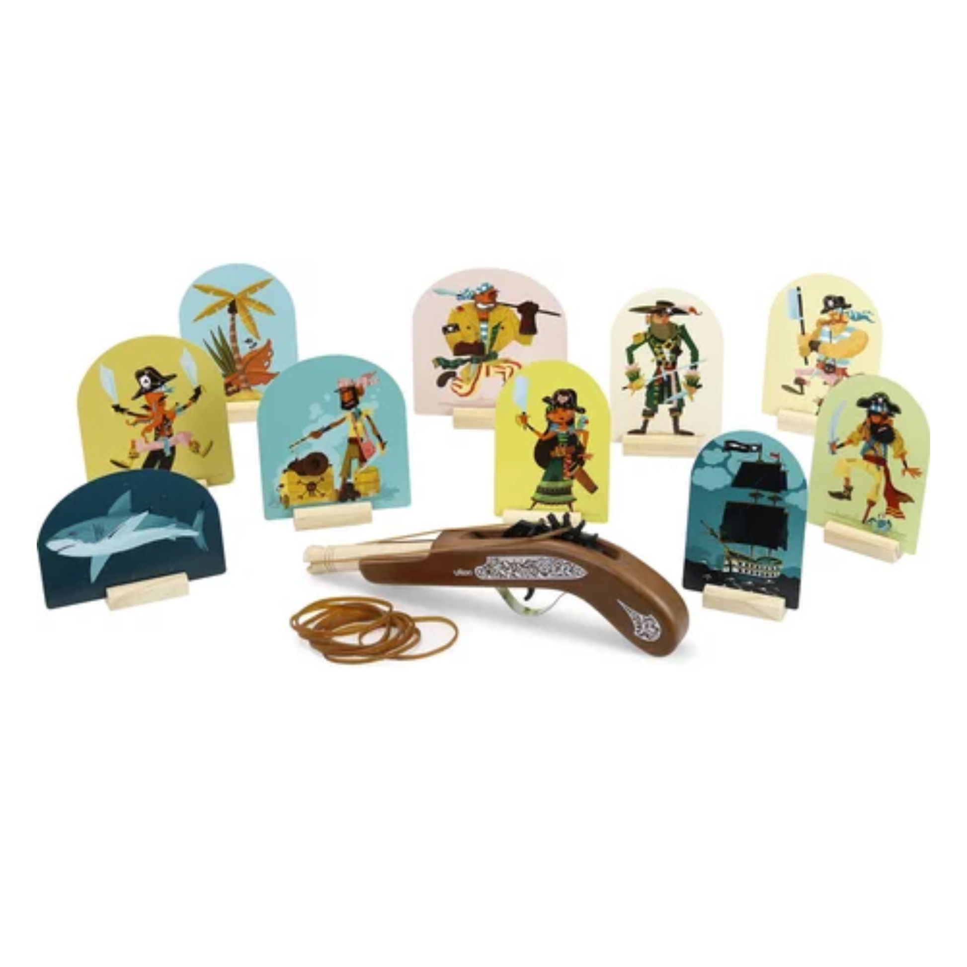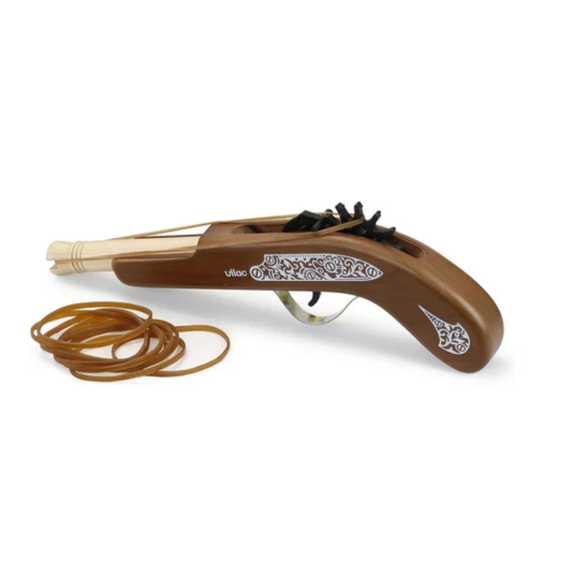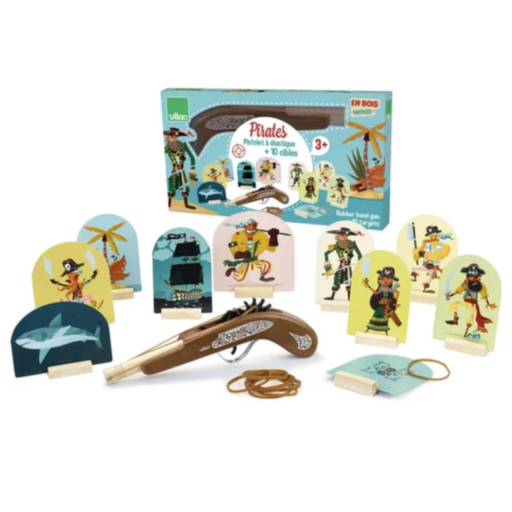 Placez l'élastique sur le bout du pistolet puis sur les crans arrières et tirez sur mes cibles !