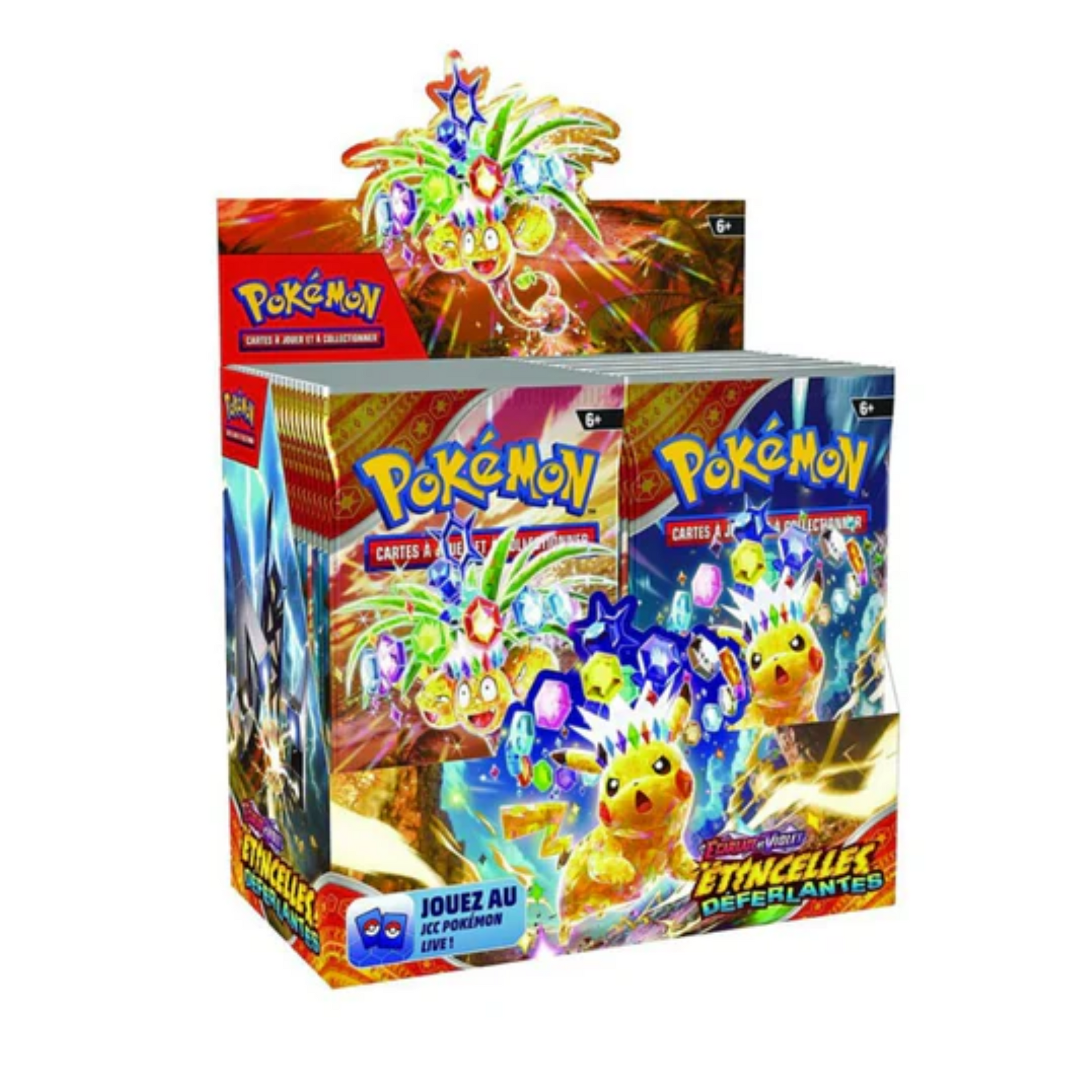 Plongez dans un monde captivant de créatures légendaires, d’aventures épiques et de Pokémon-ex Téracristal Stellaire ! Avec l’extension Écarlate et Violet – Étincelles Déferlantes, chaque booster vous réserve une part de magie, où chaque carte peut être la clé de nouvelles stratégies et surprises.