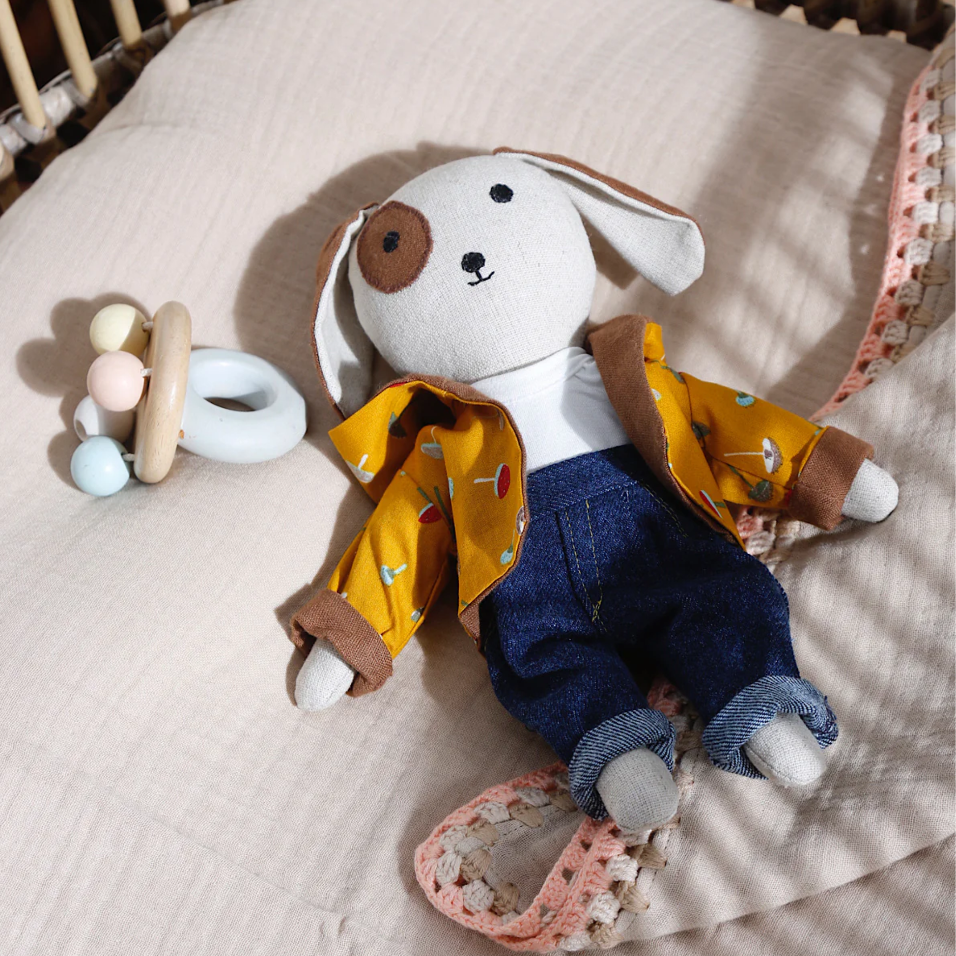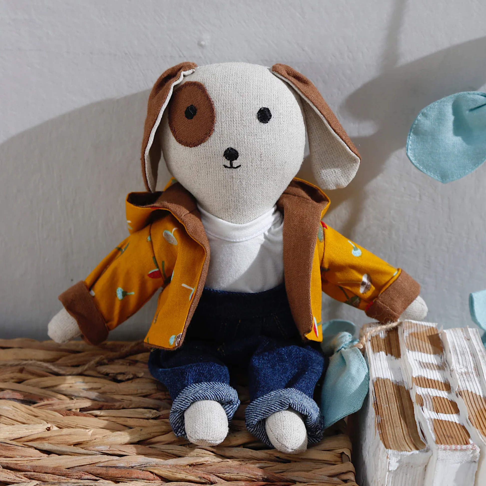 Belle poupée Mon ami câlin le chien Doggy de la marque 2 stories, une création unique réalisée artisanalement.