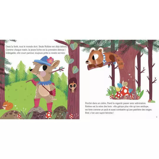 Robine ne s'arrête jamais. Du matin au soir, elle court, elle coud, elle bricole pour aider tous les habitants de la forêt, sous l'oeil admiratif de Pavel, le petit panda roux.