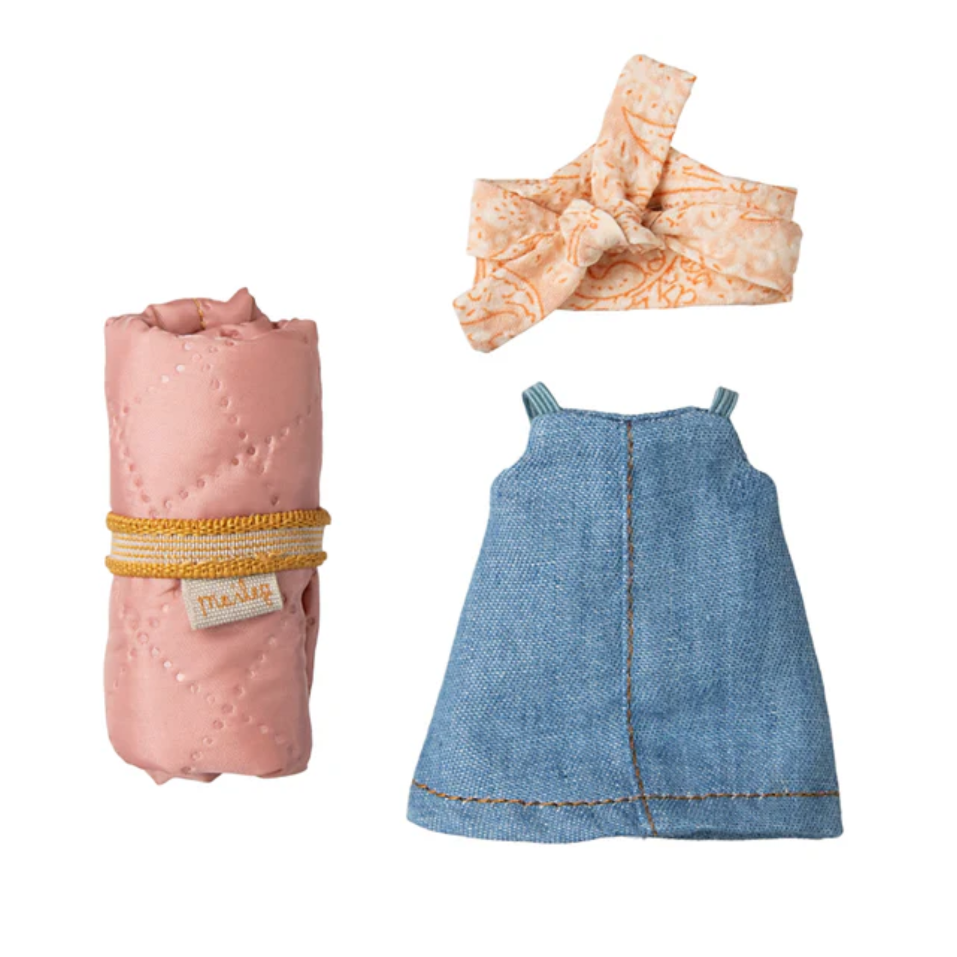 La Souris de Randonnée Grande Sœur Maileg est le compagnon idéal pour explorer forêts, montagnes et chemins imaginaires. Vêtue de vêtements de randonnée pratiques et équipée de son sac de couchage, elle part à l’aventure tout en restant douce et câline.